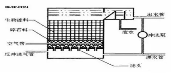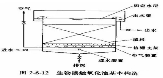 2生物膜法 1、接觸生物法 接觸生物法是一種兼有活性污泥法和生物膜法特點的一種新的污水生化處理方法。這種方法主要設備是生物接觸氧化濾池。在不透氣的曝氣池中裝有焦炭、礫石、塑料蜂窩等填料,填料被水侵沒,用鼓風機在填料底部曝氣充氧。