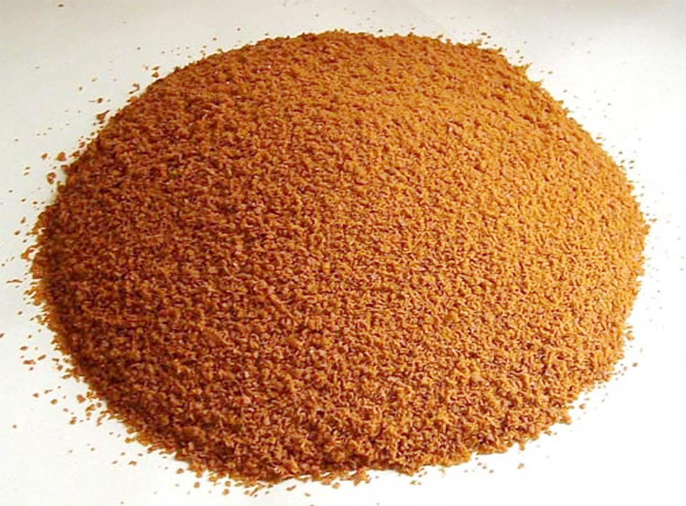 2、固態(tài)產(chǎn)品為棕褐色,紅褐色粉末,極易溶于水。